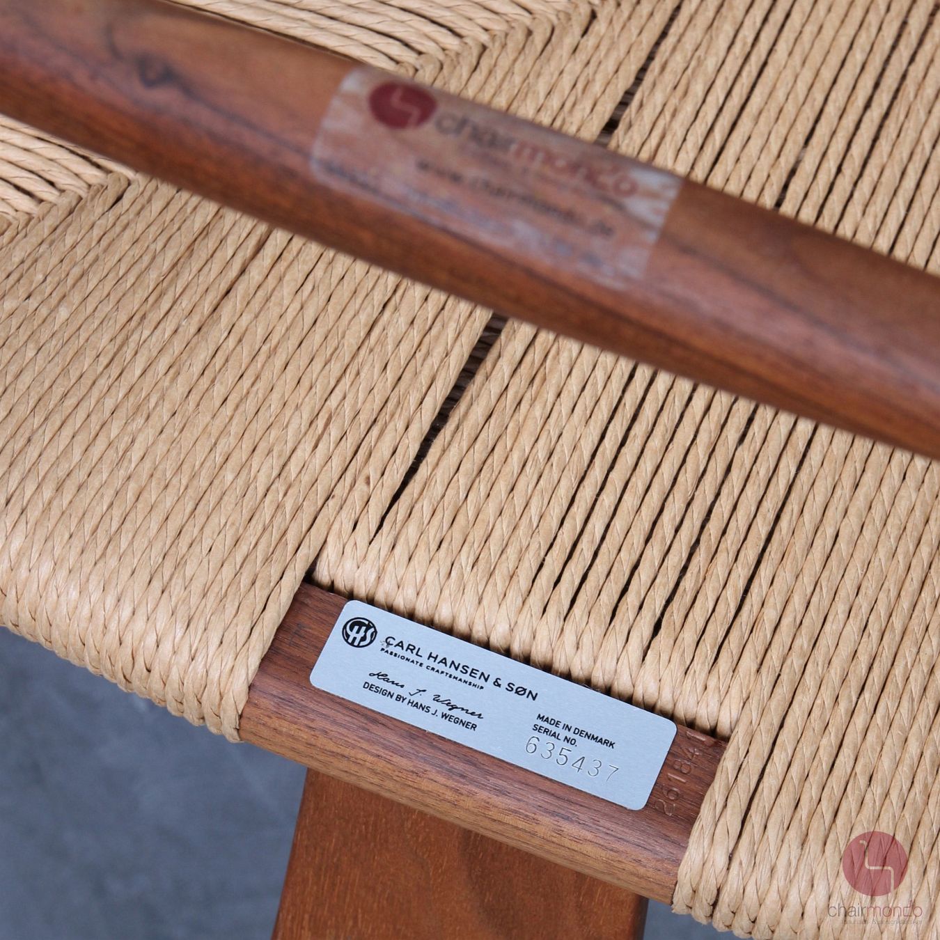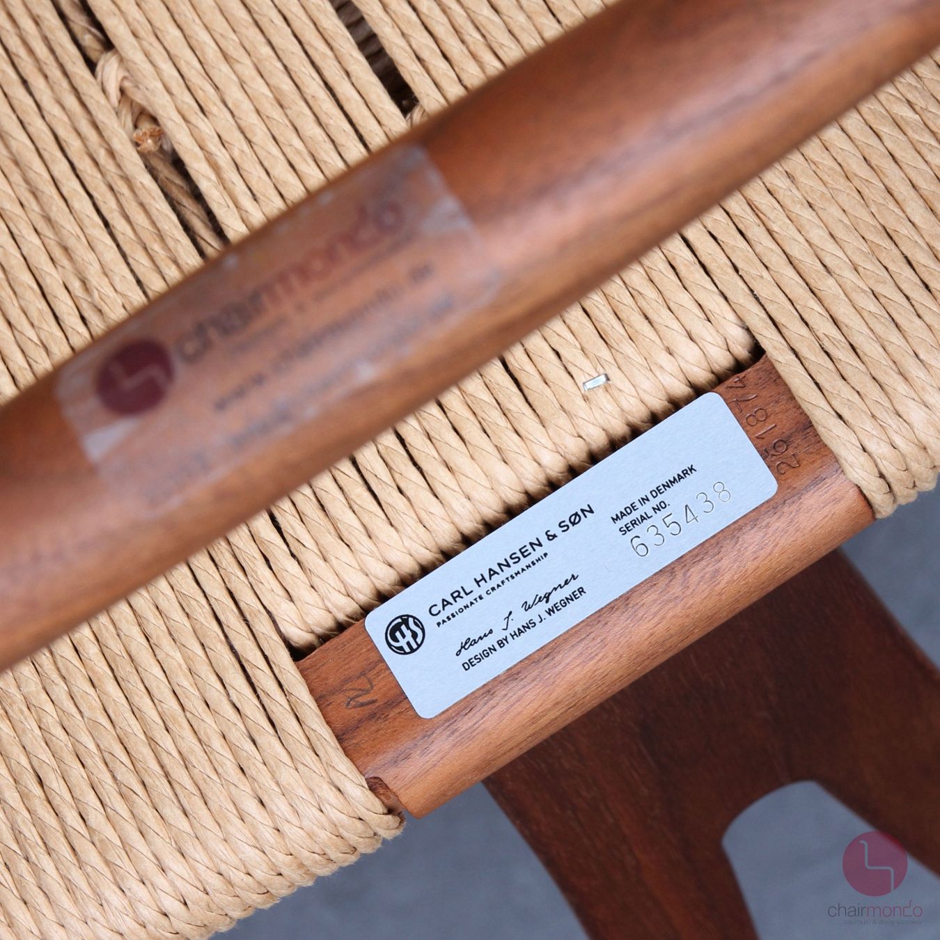 Die Stühle stammen aus dem Herstellungsjahr 2018. Auf der Unterseite der Sitzfläche haben alle die originale silberne Carl Hansen Plakette aus Metall. Auf der Plakette und im Holz ist eine Seriennummer eingeprägt. Als weiterer Nachweis für die Echtheit der Stühle wird die Originalrechnung von 2018 mitgeliefert. Die Stühle liegen in dieser hochwerigen Ausfühurng heute bei rund 1500 Euro.