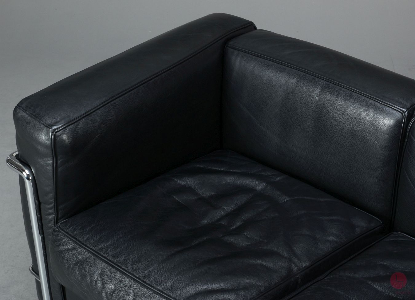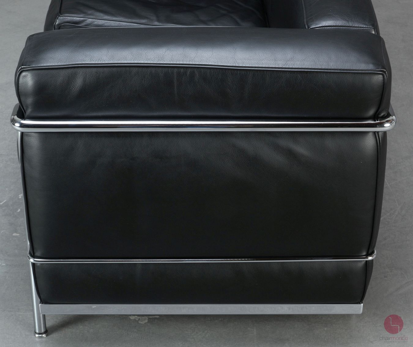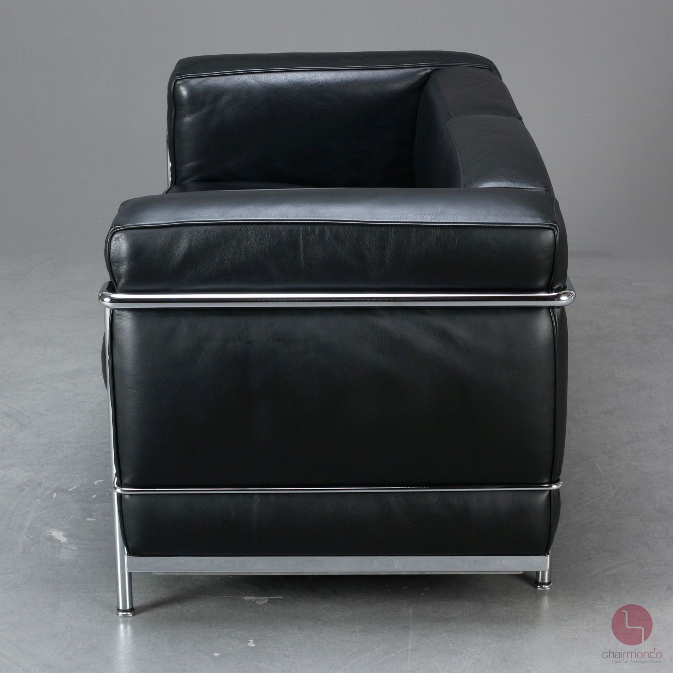 Auf dem verchromten Stahlrohr ist eine Gravur mit folgendem Inhalt vorhanden: Cassina LC 2 No 61476 - anchließend folgt die Unterschrift von Le Corbusier. Auf der Unterseite der Sitzkissen ist jeweils der Cassina Schriftzug vorhanden. Das verchromte Stahlrohr befindet sich in sehr gutem Zustand und glänzt wunderbar!