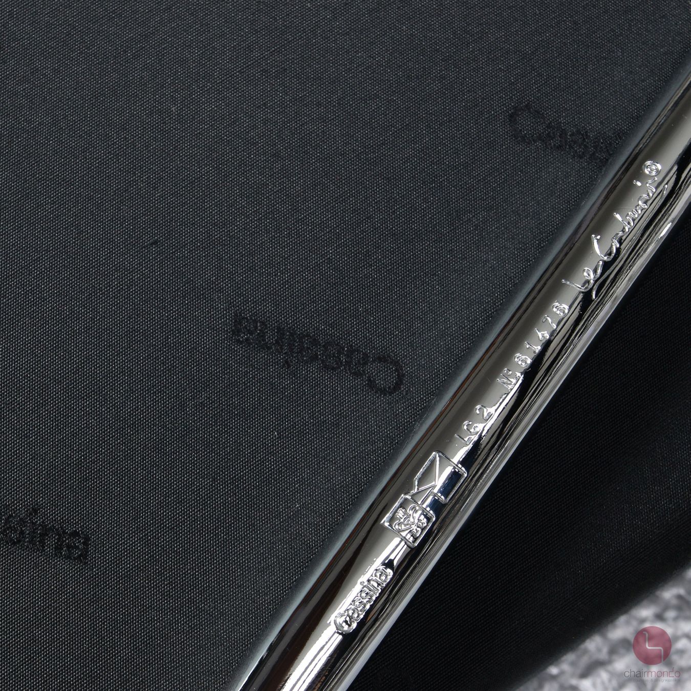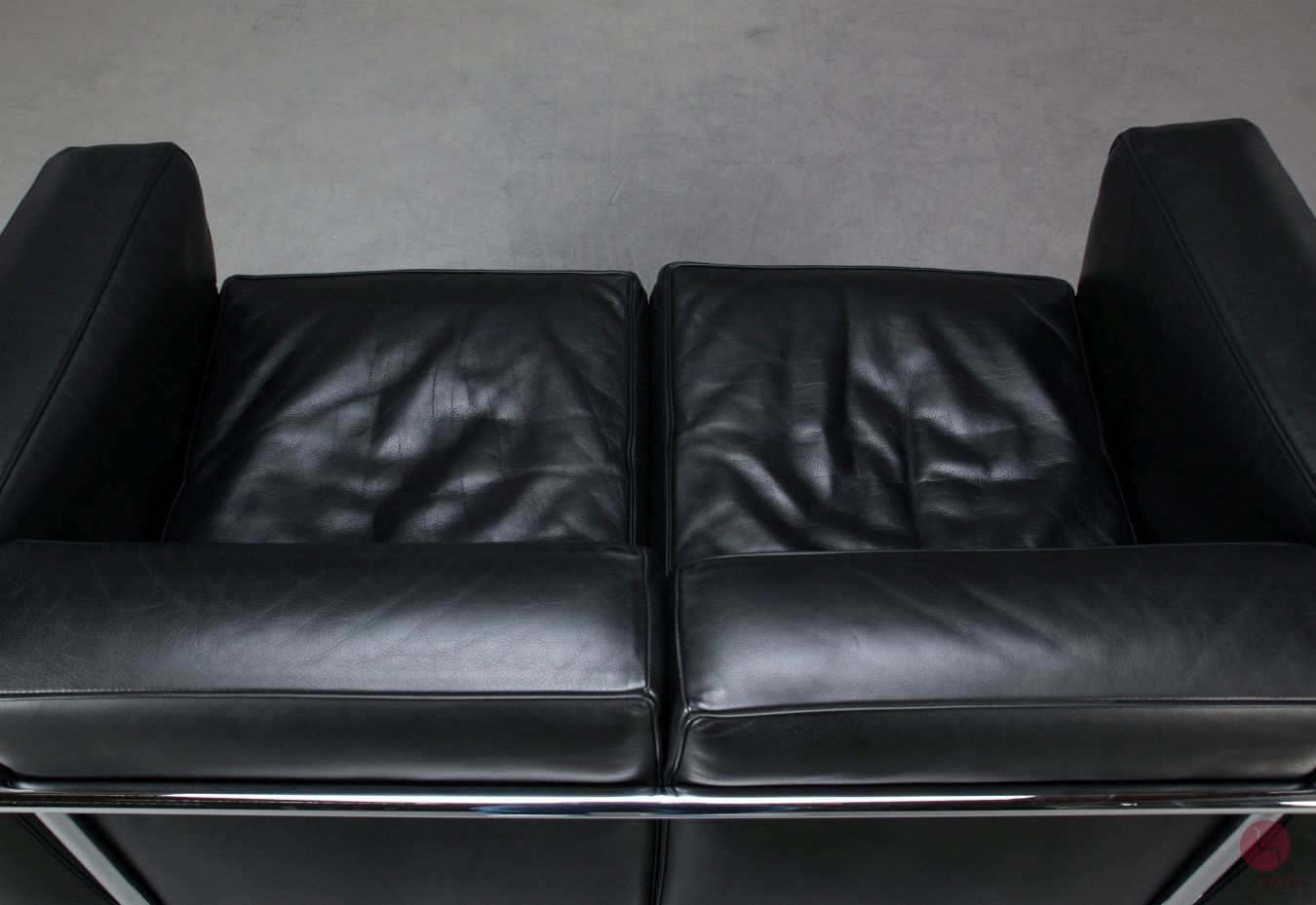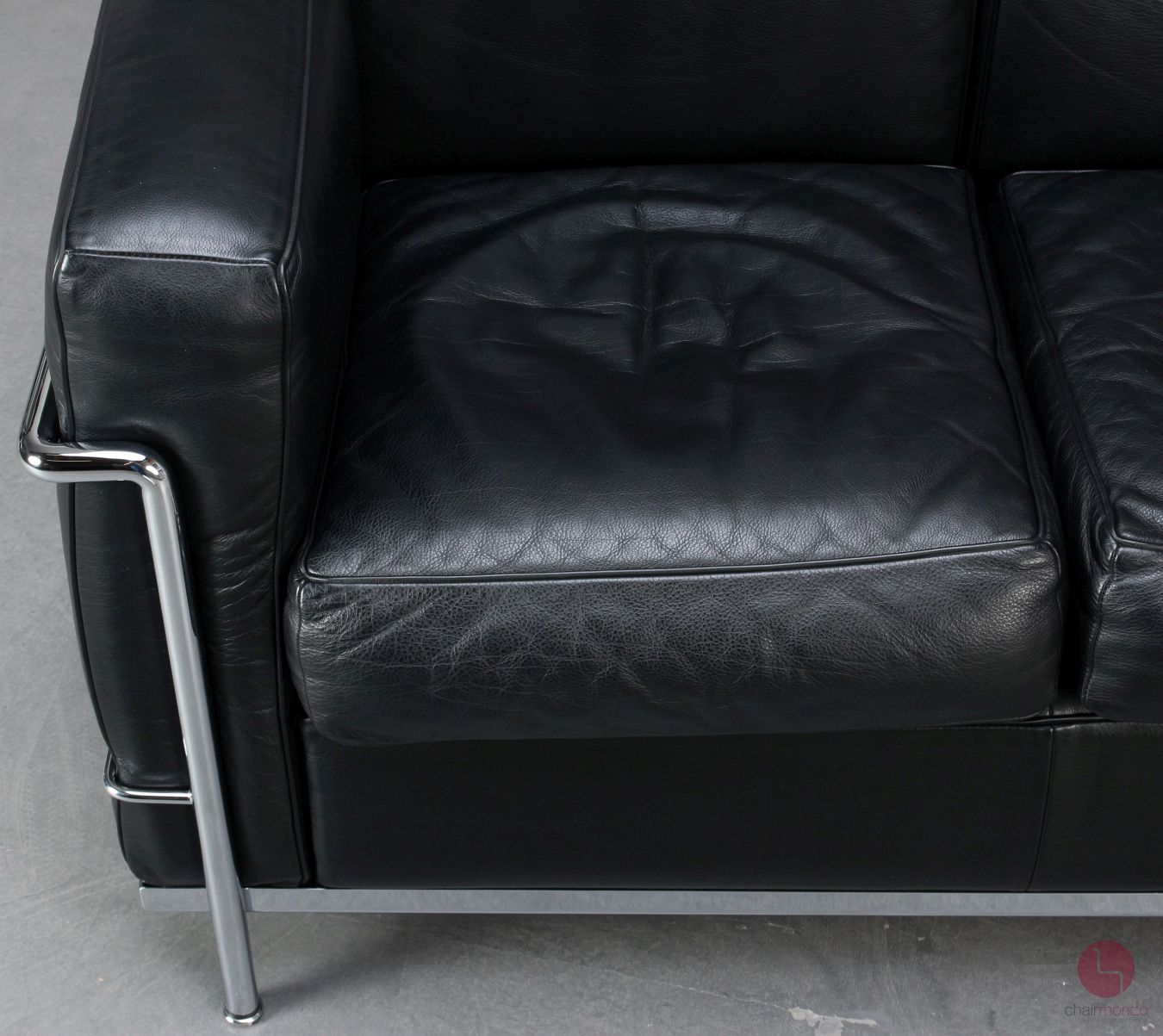 Auf dem verchromten Stahlrohr ist eine Gravur mit folgendem Inhalt vorhanden: Cassina LC 2 No 61476 - anchließend folgt die Unterschrift von Le Corbusier. Auf der Unterseite der Sitzkissen ist jeweils der Cassina Schriftzug vorhanden. Das verchromte Stahlrohr befindet sich in sehr gutem Zustand und glänzt wunderbar!