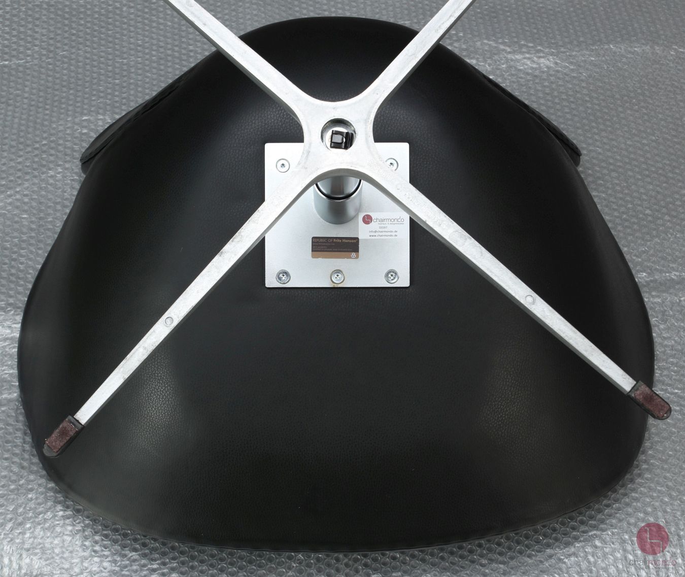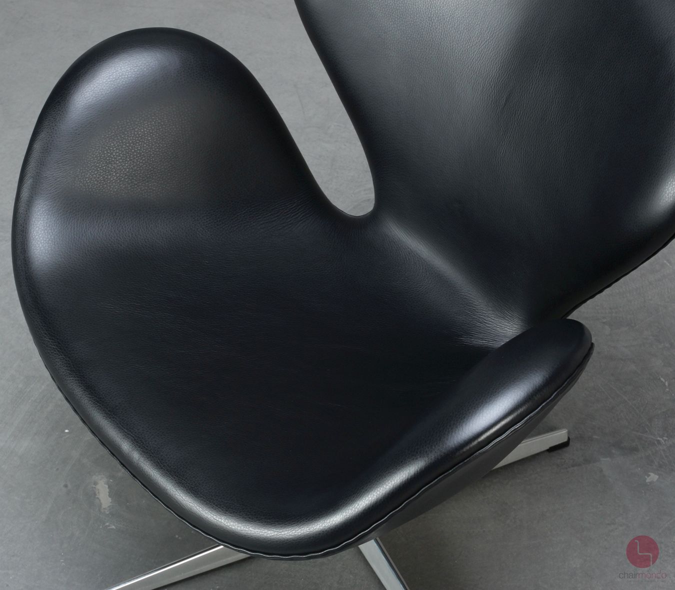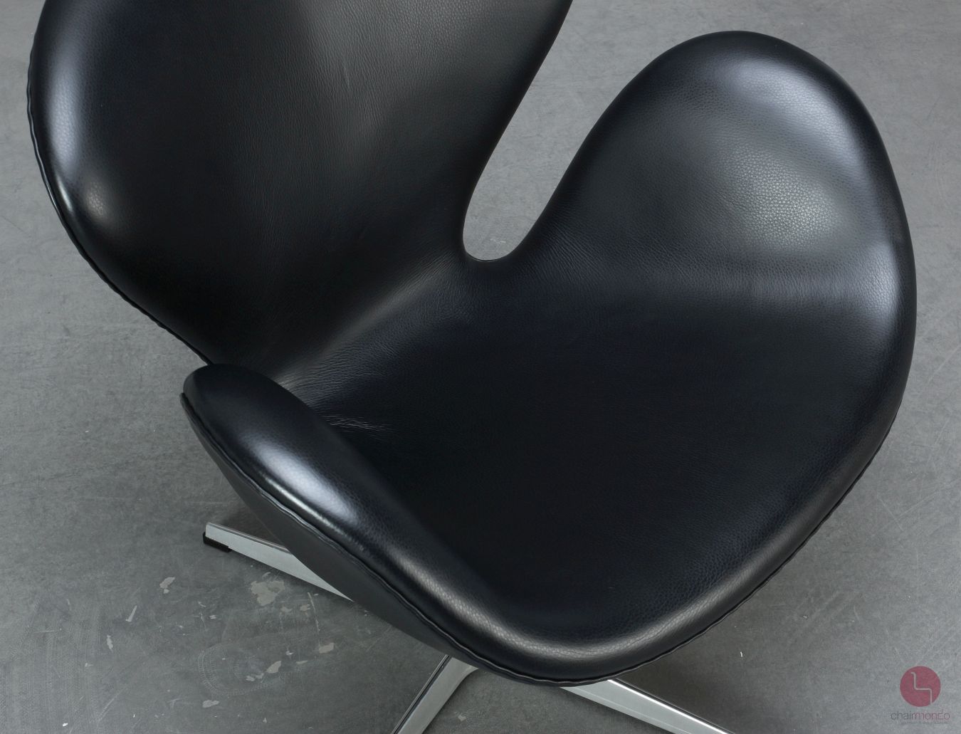 Der Swan Chair hat eine Fritz Hansen Gravur auf der Unterseite des Fußkreuzes.