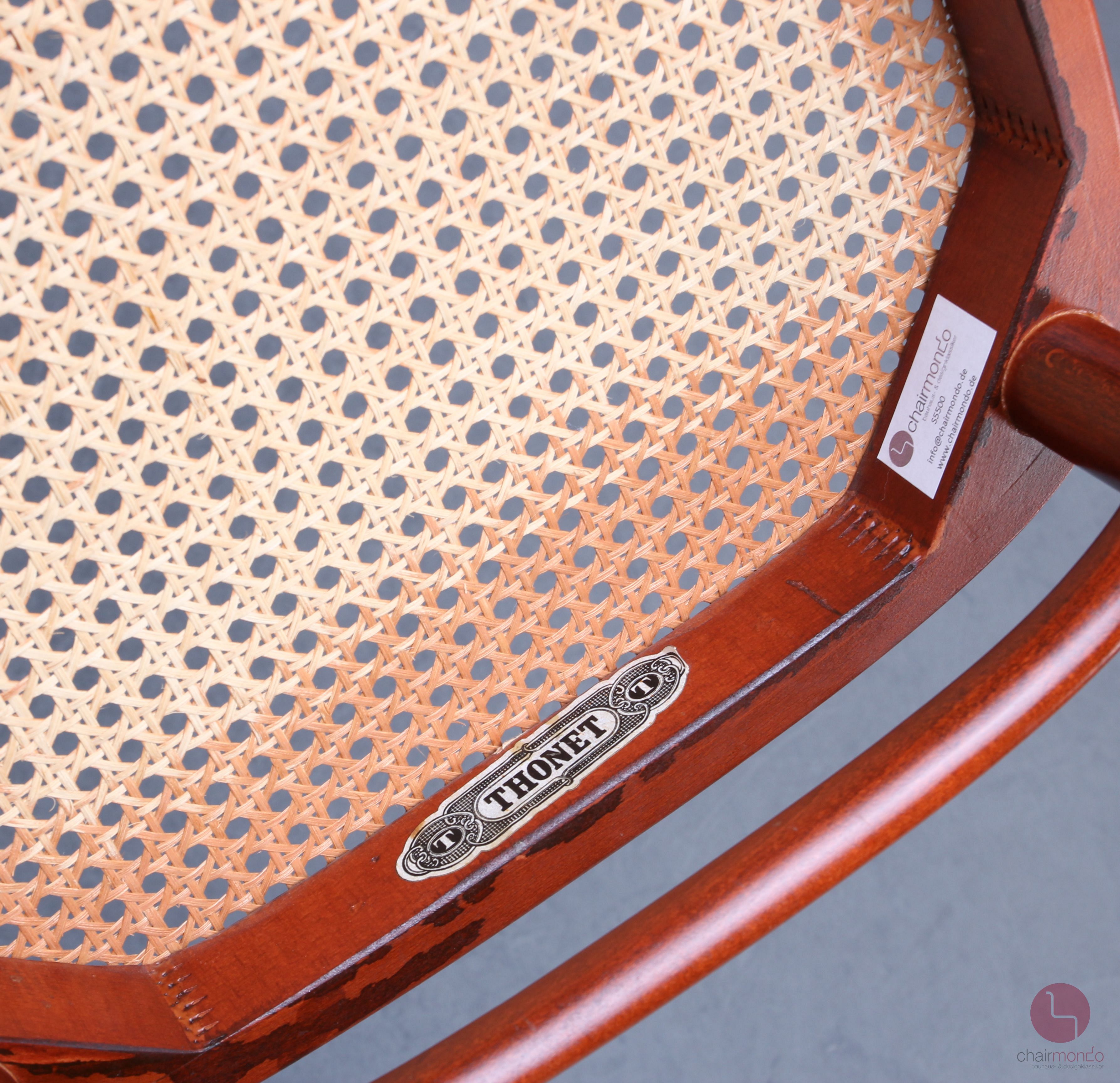 Die Stühle stammen in etwa aus dem Produktionsjahr um 1980. Auf der Unterseite ist jeweils noch de originale Thonet Aufkleber vorhanden.