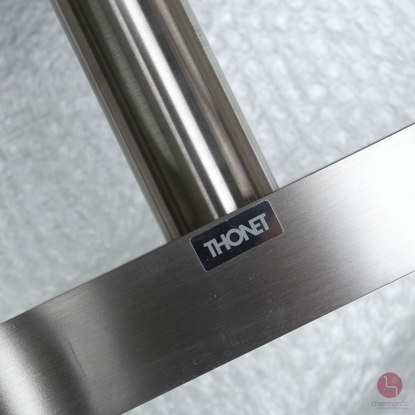 Es handelt sich bei dem Thonet 808, um einen Sessel, der gekonnt modernes Design mit gesundem Sitzen verbindet. An Hand einer Lederschlaufe lässt sich durch Zug die Rückenneigung verstellen und fixieren. Der Sessel stammt in etwa aus dem Herstellungsjahr um 2018. Auf dem Gestell befindet sich jeweils ein silberner Thonet Aufkleber.