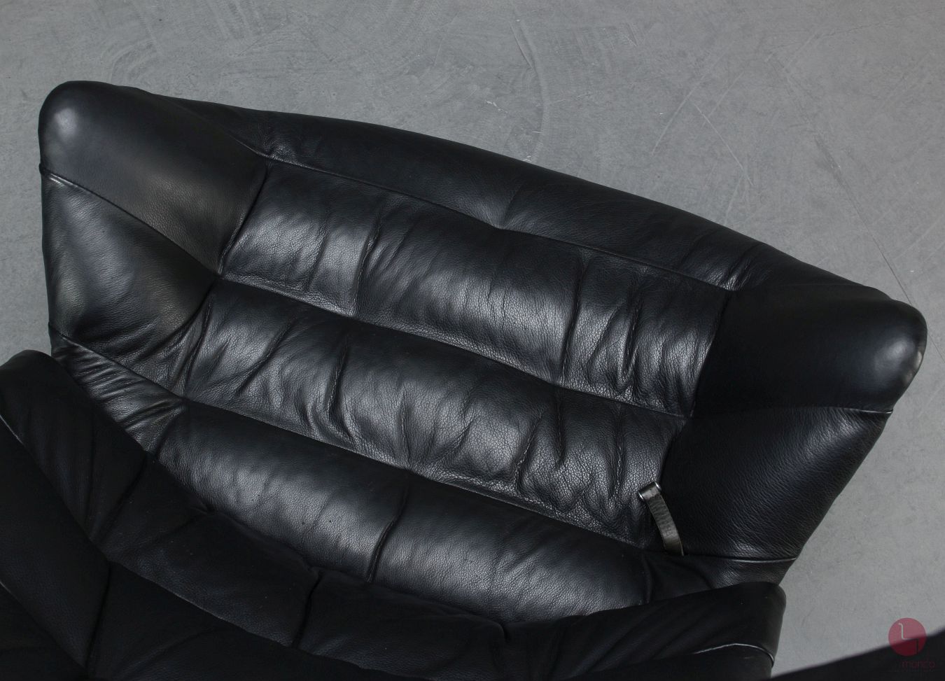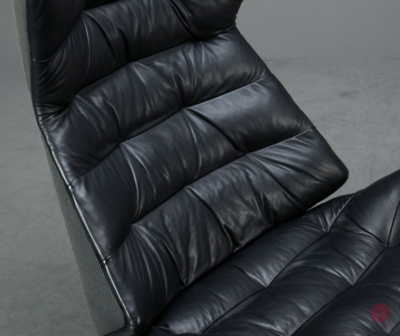 Thonet 808 Lounge Leder Sessel Schwarz mit Ottoman gebraucht