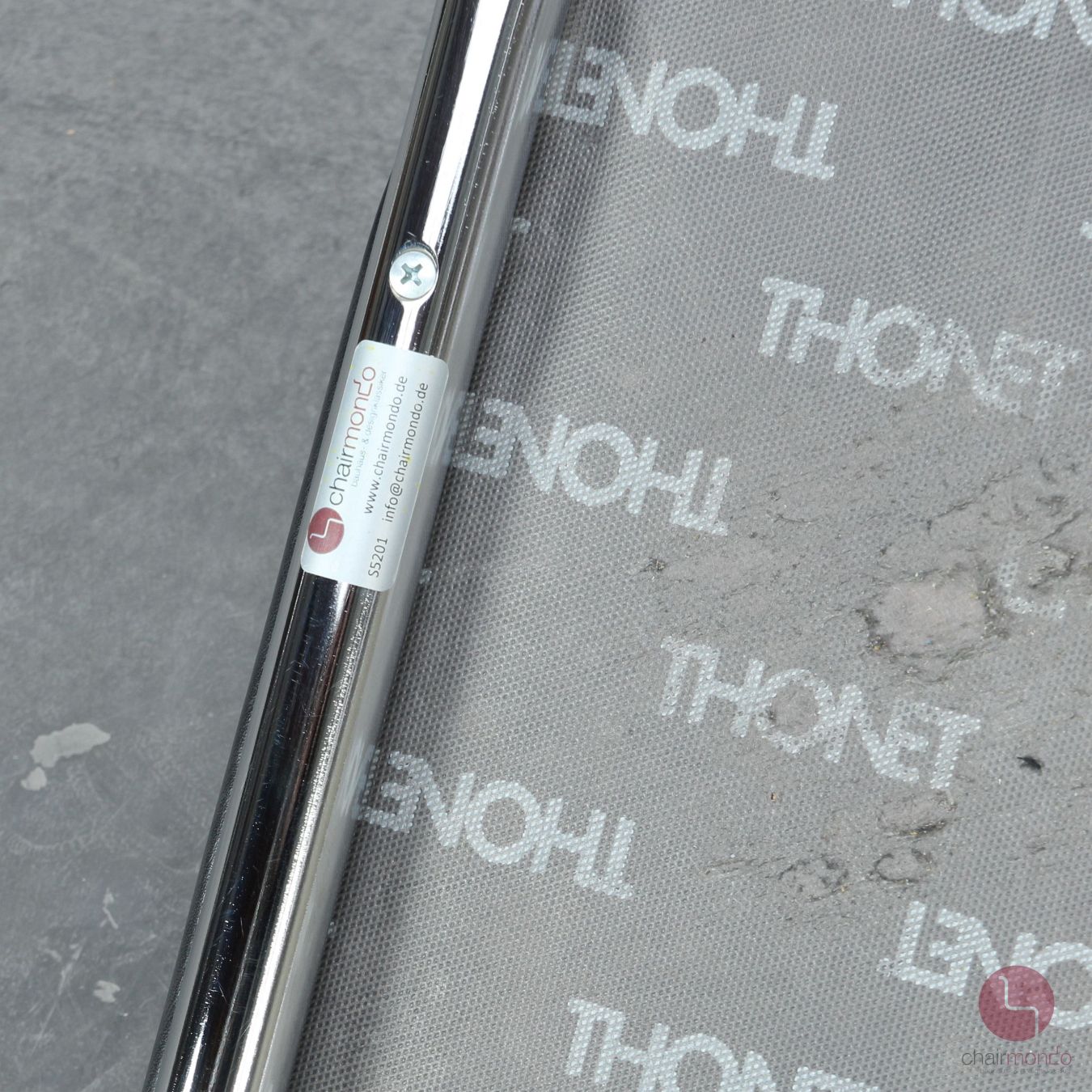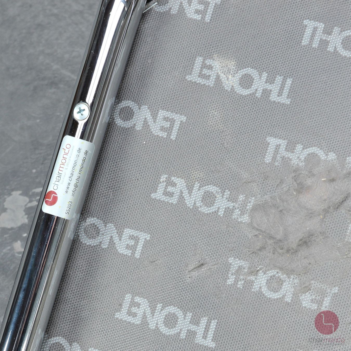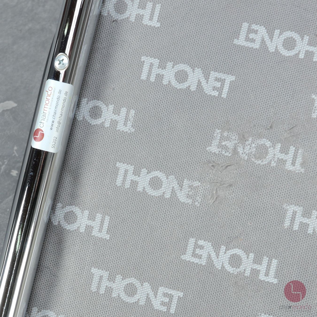 Die Stühle befinden sich in einem sehr guten gebrauchten Zustand. Der schwarze Echtleder Bezug aus Nappaleder befindet sich jeweils in sehr gutem Zustand mit leichten Gebrauchsspuren. Die Stühle stammen in etwa aus dem Herstellungsjahr um 2010 und machen mit dem hochwertigen Echtleder Bezug einen wunderschönen Gesamteindruck. Auf der Unterseite befindet sich auf dem Gestell der Thonet Aufkleber.
