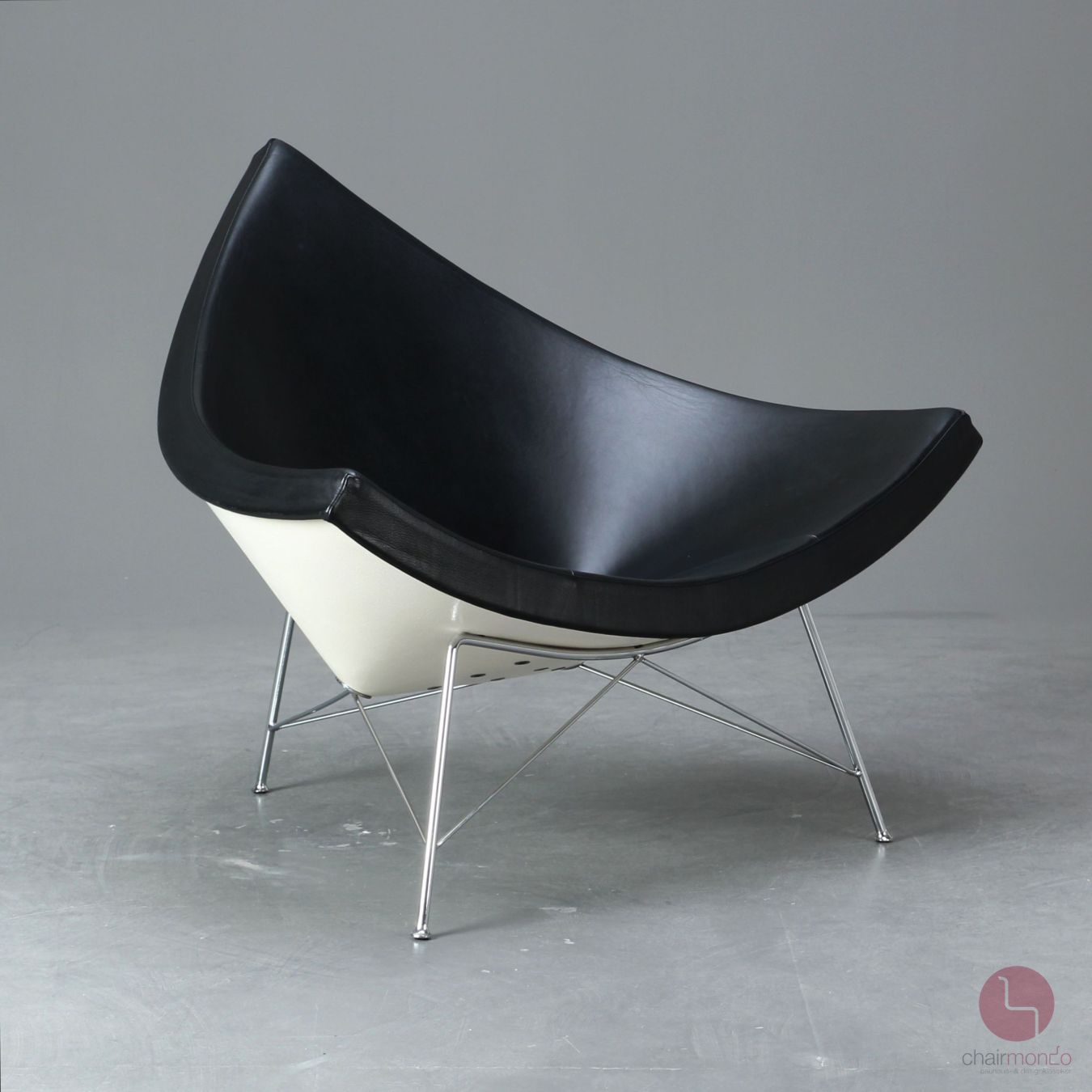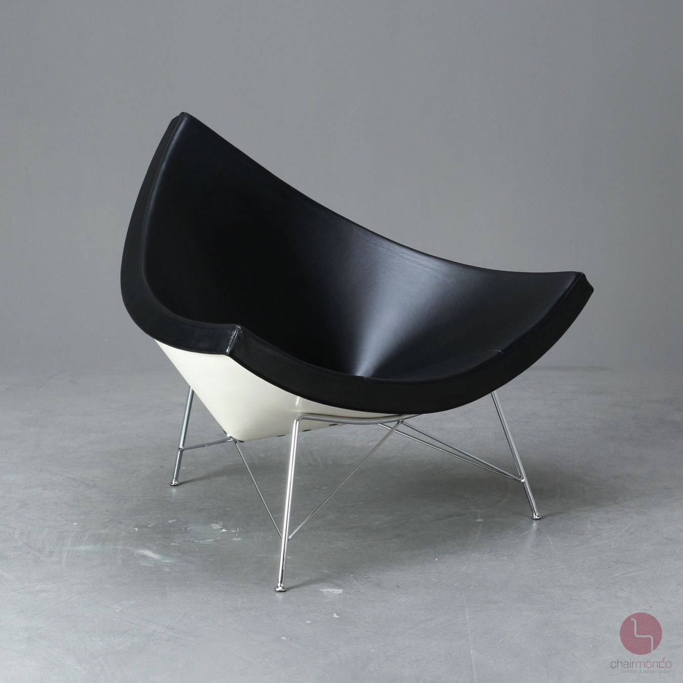 Der Coconut Chair ist typisch für das Design der 1950er-Jahre – ein humorvoller Gestus, formale Klarheit und der reduzierte Einsatz der Materialien zeichnen ihn aus. Der Designer George Nelson selbst verglichden Sessel mit einer in acht Teile aufgeschnittenen Kokosnuss, wobei erdie Farbigkeit beim Coconut Chair umkehrte: Die äussere Sitzschale aus Kunststoff ist weiss, das einteilige Polster ist mit hochwertigen Leder ausgestattet. Mit dem Rückgriffauf die natürliche, raumgebende Form einer Schale entwarf Nelson einen einladenden, bequemen Sessel, der dem Nutzer die Freiheit unterschiedlichster Sitzpositionen gibt.