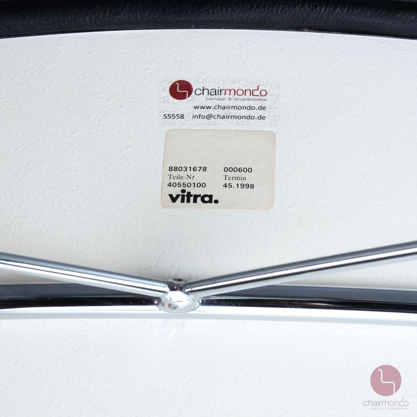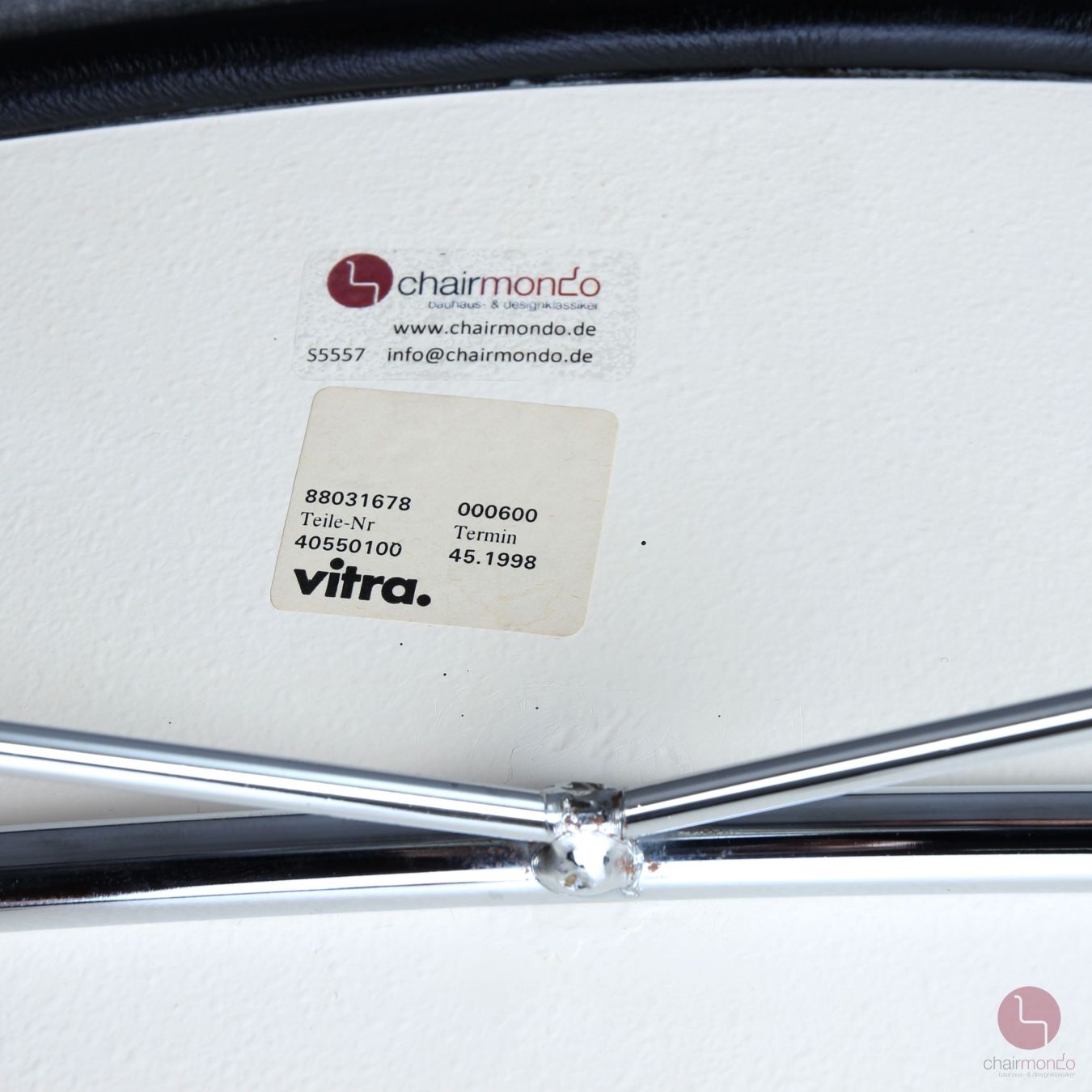 Das verchromte Gestell befindet sich ebenfalls in sehr gutem Zustand und glänzt wunderbar.