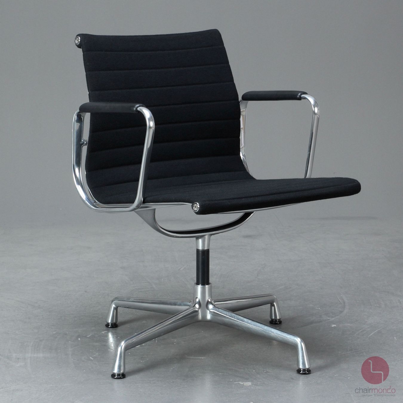 Der Aluminium Chair zählt zu den Designklassikern des 20. Jahrhunderts. Ein wichtiges Merkmal ist die intelligente Verbindung von Materialien und seine klare transparente Form. Die Sitzfläche des drehbaren Stuhls von Vitra ist entweder mit Leder, einem Kunststoffnetzgewebe oder einem Hopsak-Stoff bezogen. Das Untergestell und die Armlehnen sind aus poliertem Aluminium gefertigt - entweder farblich beschichtet, poliert oder verchromt. Bei dem EA 108 handelt es sich um einen drehbaren Stuhl. Er eignet sich sowohl als Bürostuhl, als auch für den Einsatz im Ess- oder Wohnzimmerbereich. Es handelt sich um einen stilvollen und gleichzeitig sehr bequemen Stuhl.