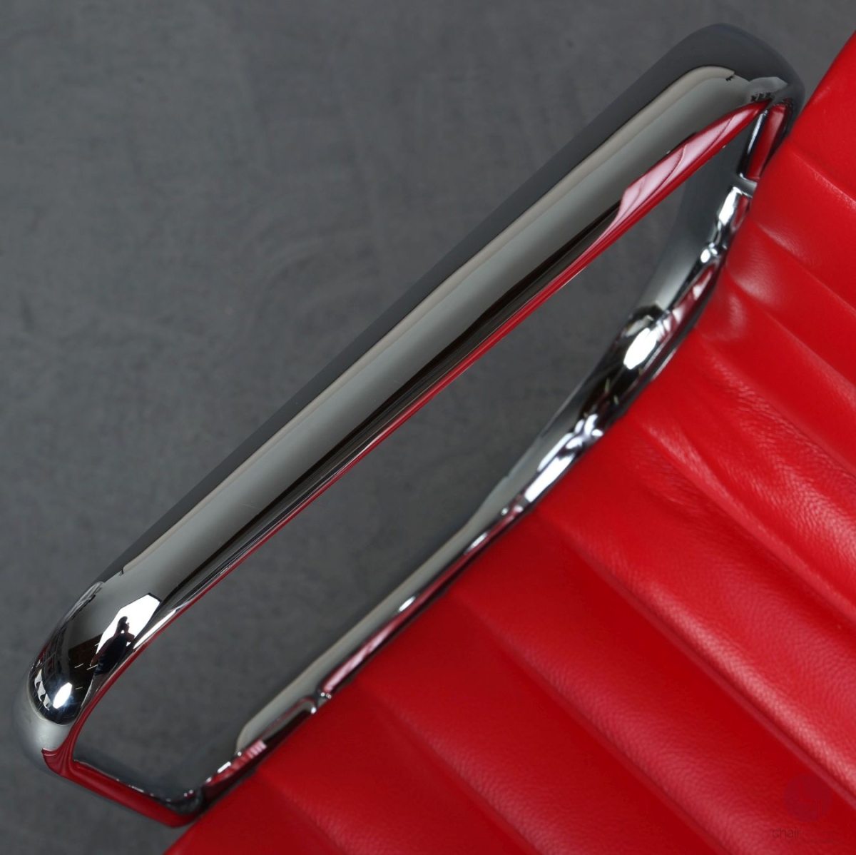 Bei uns erhalten Sie den Designklassiker in einer coolen Ausfühurng mit rotem Echtleder Bezug, Gestell und Armlehnen sind Aluminium verchromt.
