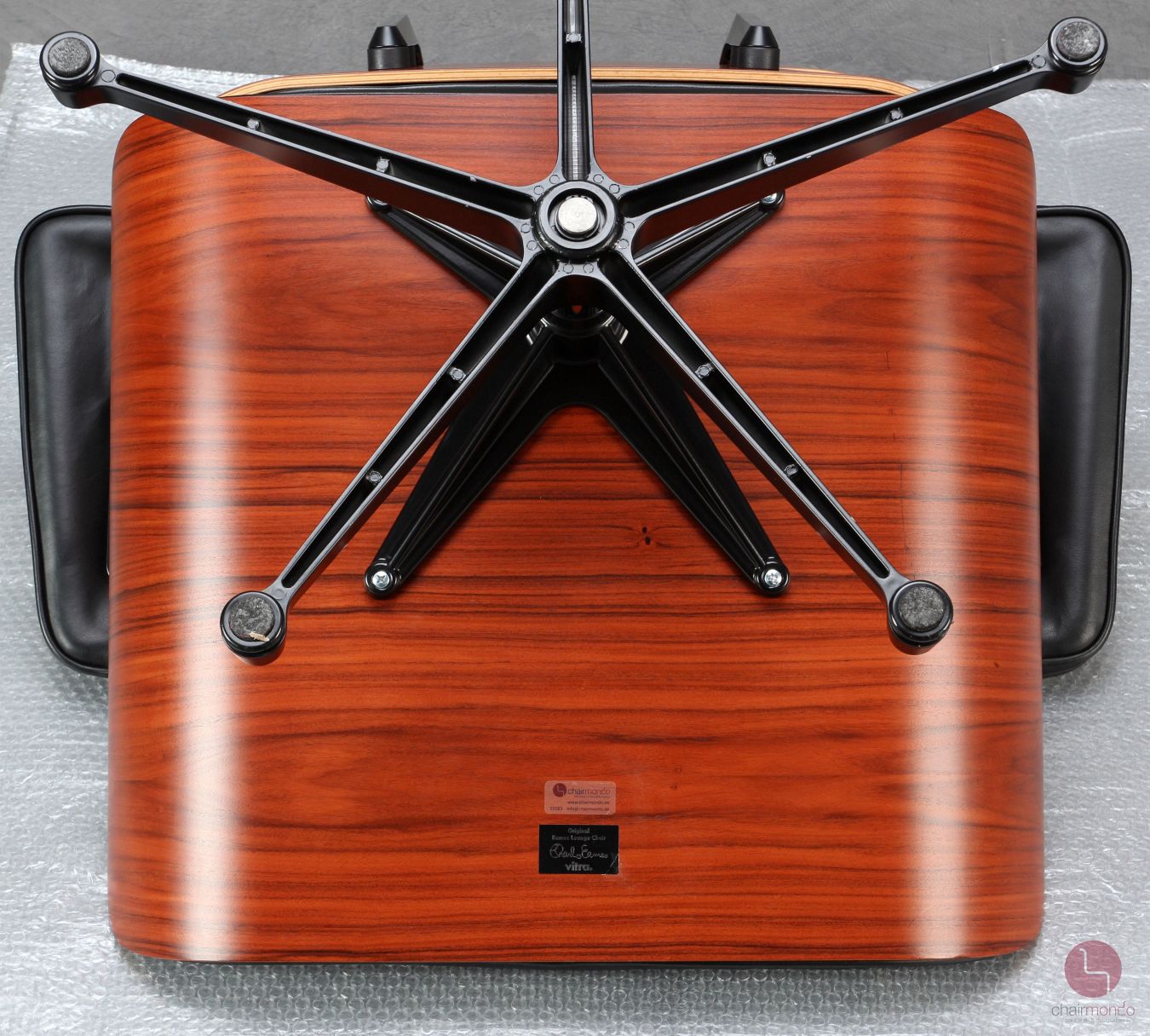Das Untergestell des Eames Lounge Chair ist entweder als verchromte, oder schwarz beschichtete Version erhältlich. In unterschiedlichen Kombinationsmöglichkeiten äußert sich ein ganz individueller Charakter.