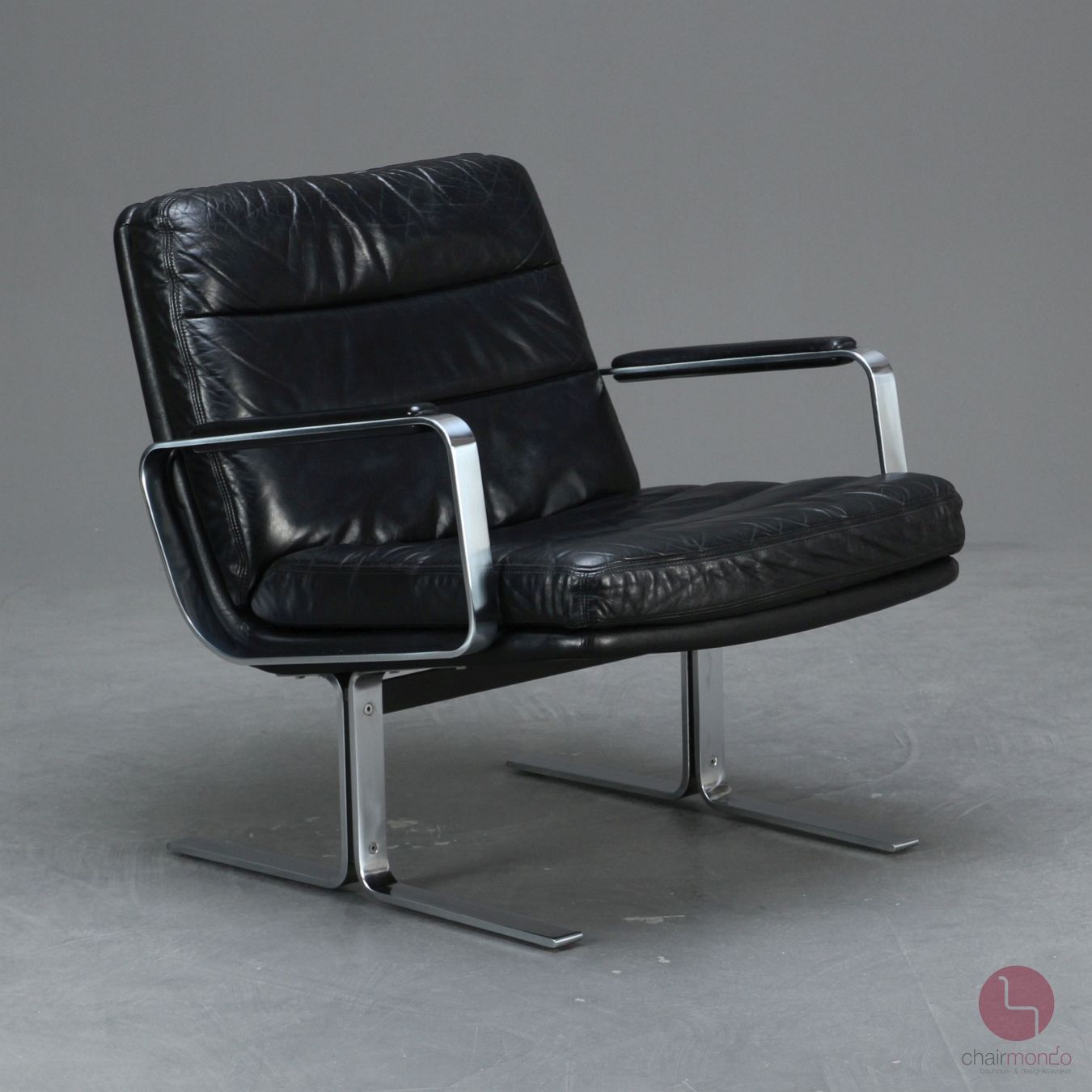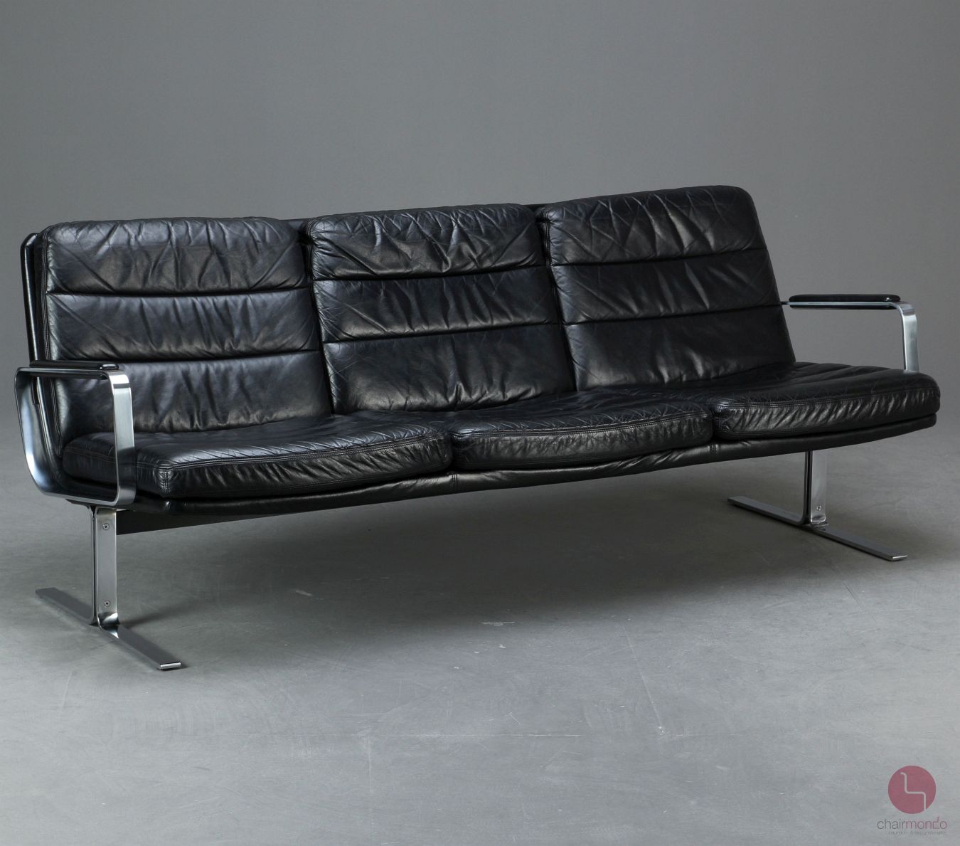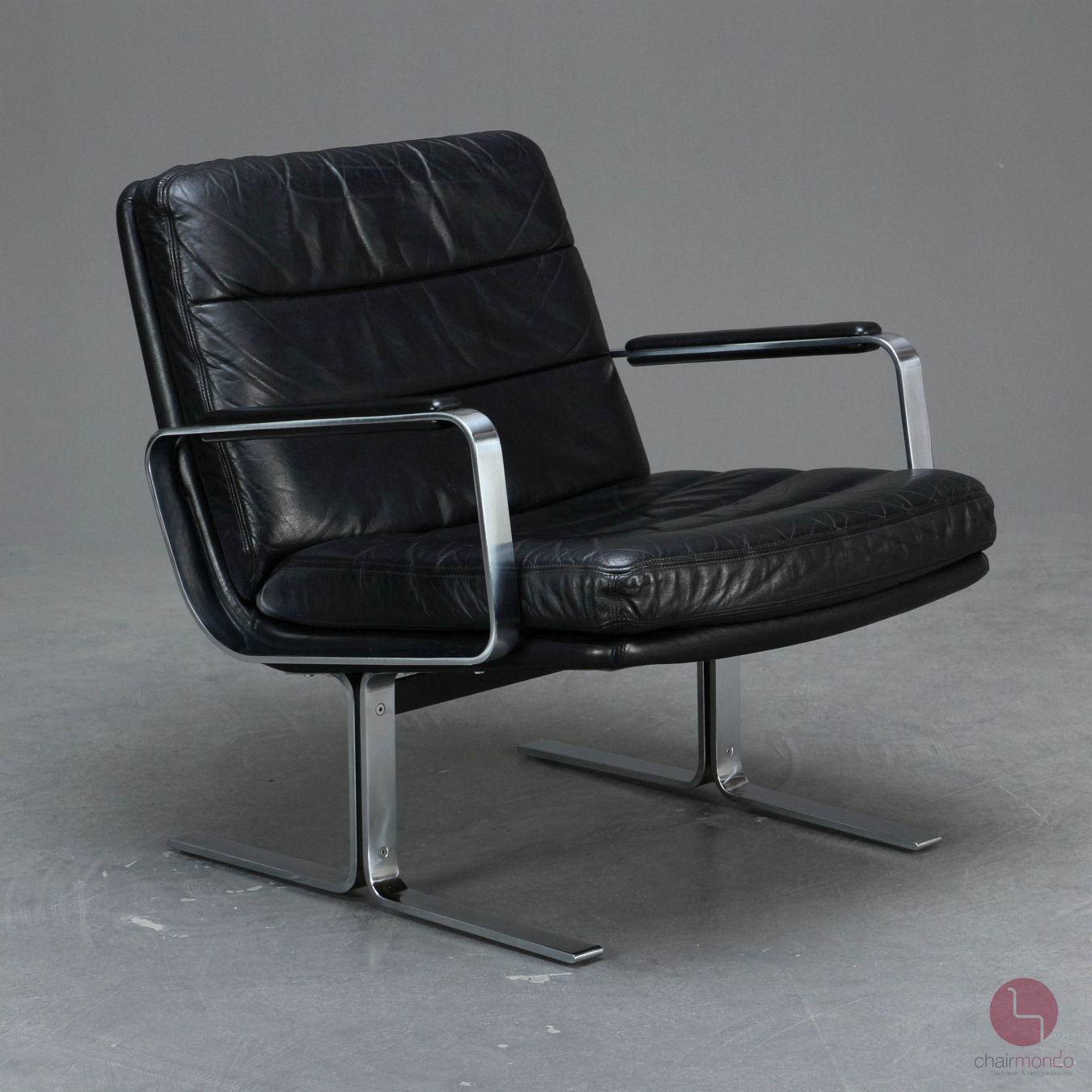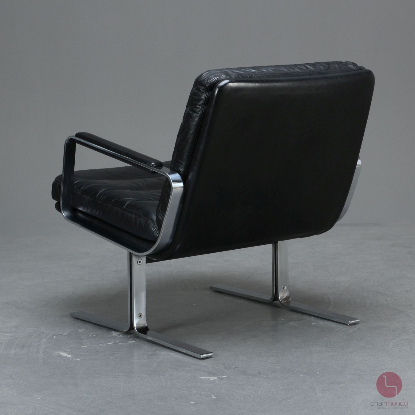 Walter Knoll - Economy Lounge Garnitur Bernd Münzebrock entwarf Anfang der der 1970er Jahre diese Sitzgarnitur und weitere Sitzmöbel für den bekannten Design Möbelhersteller Walter Knoll. Die charakteristisch geformten Fußgestelle und die Armlehnen sind aus hochwertigem poliertem Edelstahl gefertigt. Die Sitz- und Rückenlehne sind mit schwarzen Leder bezogen. Der zugehörige Couchtisch hat eine schöne Rauchglasplatte - ganz im Stile der 1970er Jahre.