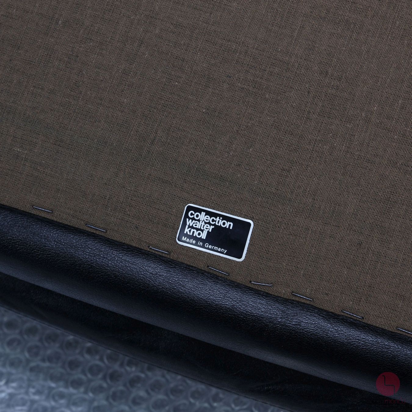 Es handelt sich um eine originale Walter Knoll Sitzgarnitur gelabelt mit "Collection Walter Knoll". Auf der Unterseite der Sitzflächen befindet sich jeweils ein entsprechender Aufkleber (siehe Foto). Das polierte Edelstahl Gestell befindet sich bei allen Möbeln in hervorragenem Zustand und hat einen sehr schönen matten Glanz. Auf der Unterseite der Füße ist Filz angebracht, sodass sich die Garnitur gut über den Boden verschieben lässt.